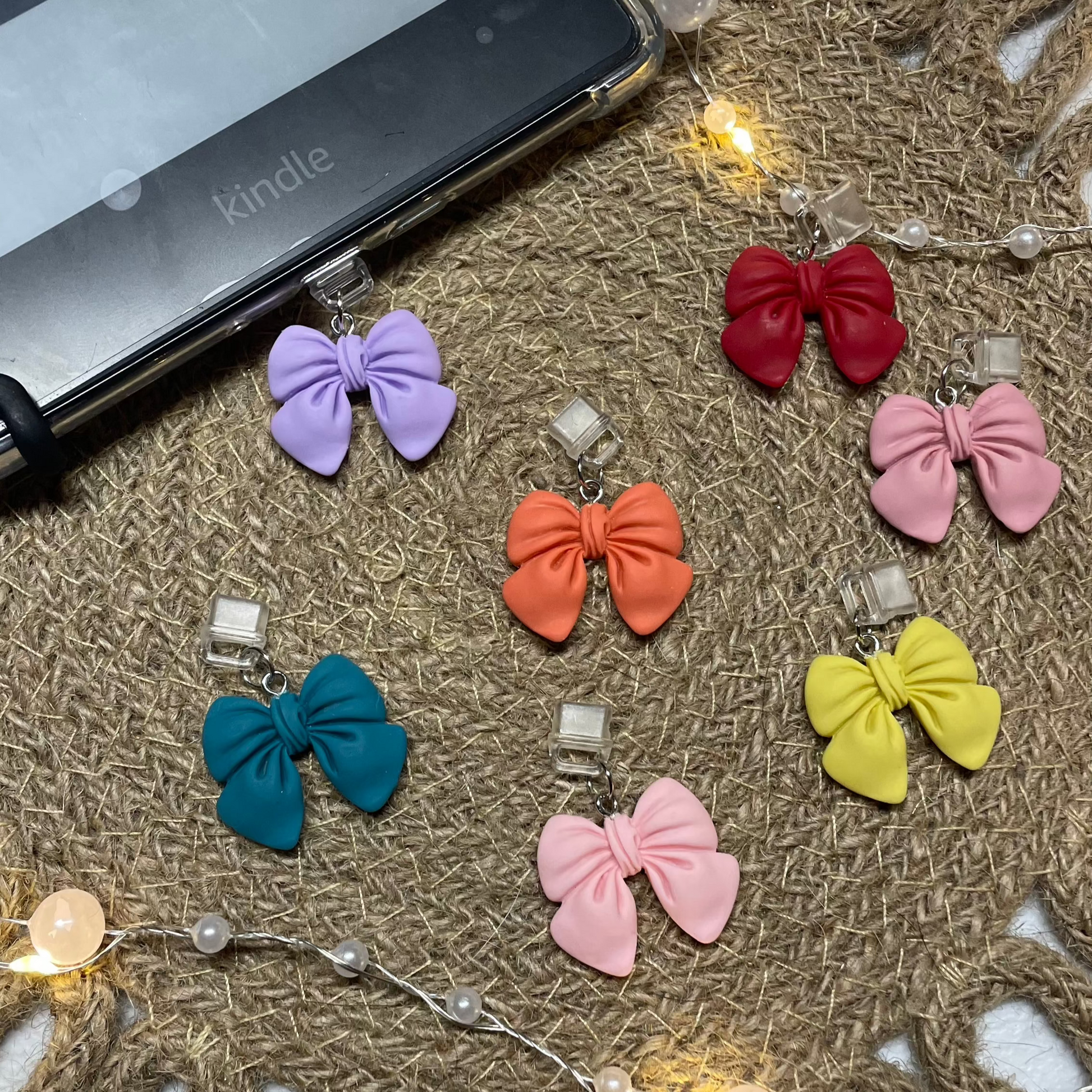 Add some personality and style to your devices with these adorable Bow Anti-Dust Plug Charms! Made of colorful resin, each one features a cute bow design that also serves as an anti-dust plug. Use them on your Kindle, phone, Nintendo switch, and more for some extra flair and protection.