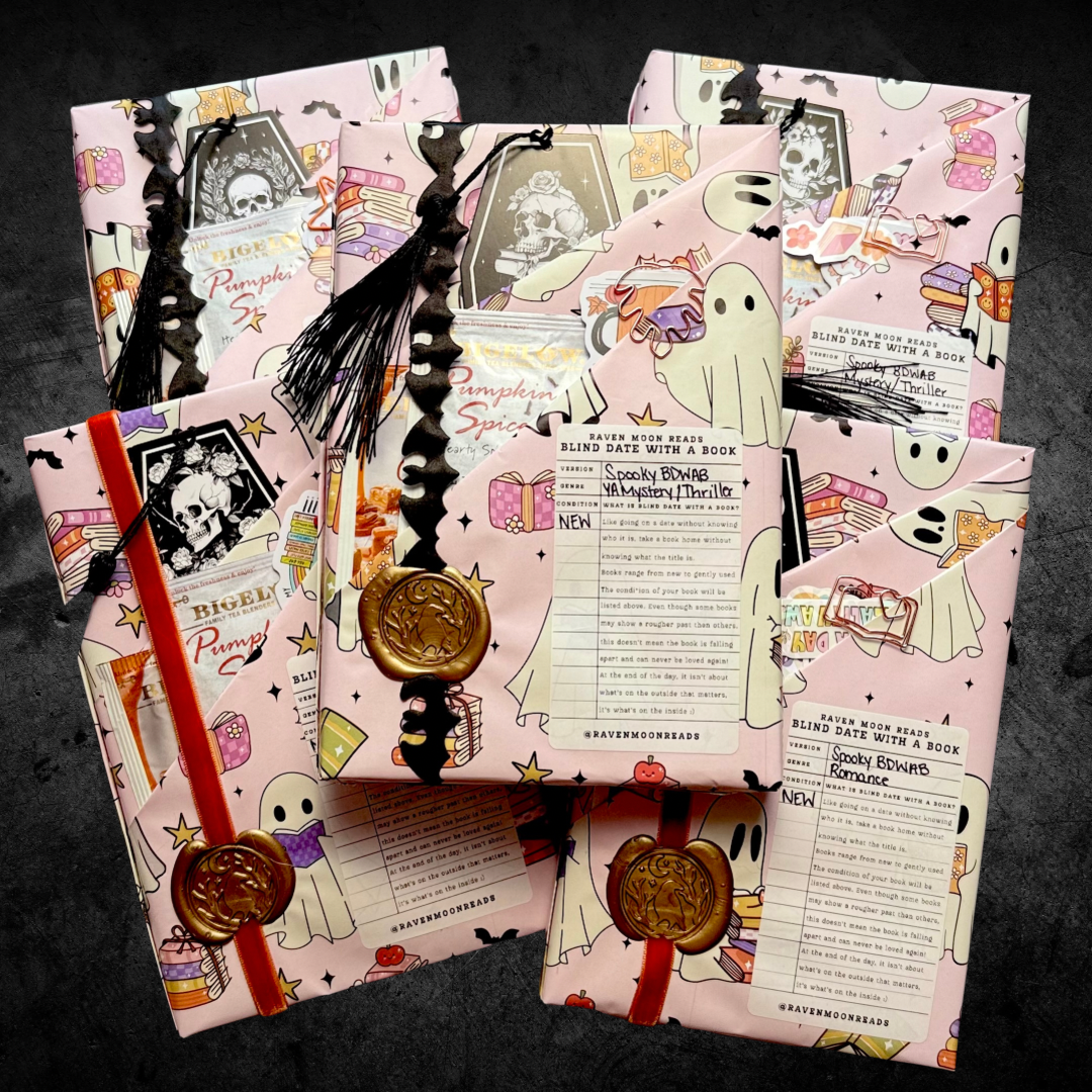 Treat yourself to a hauntingly fun surprise! Our Spooky Edition Blind Date with a Book is the perfect cozy-night companion for fall. Each mystery read comes wrapped in adorable bookish ghost-themed paper and tied with ribbon, making it just as fun to unwrap as it is to read.